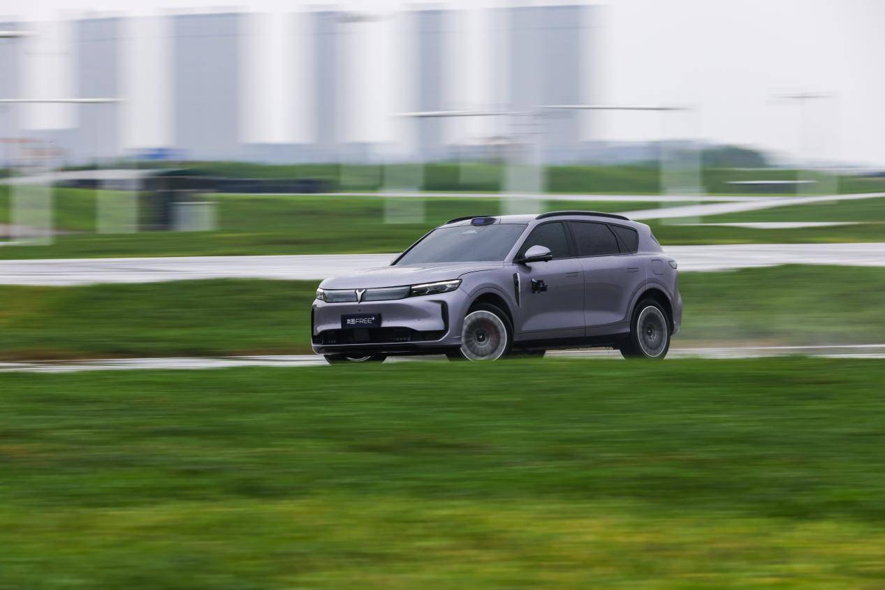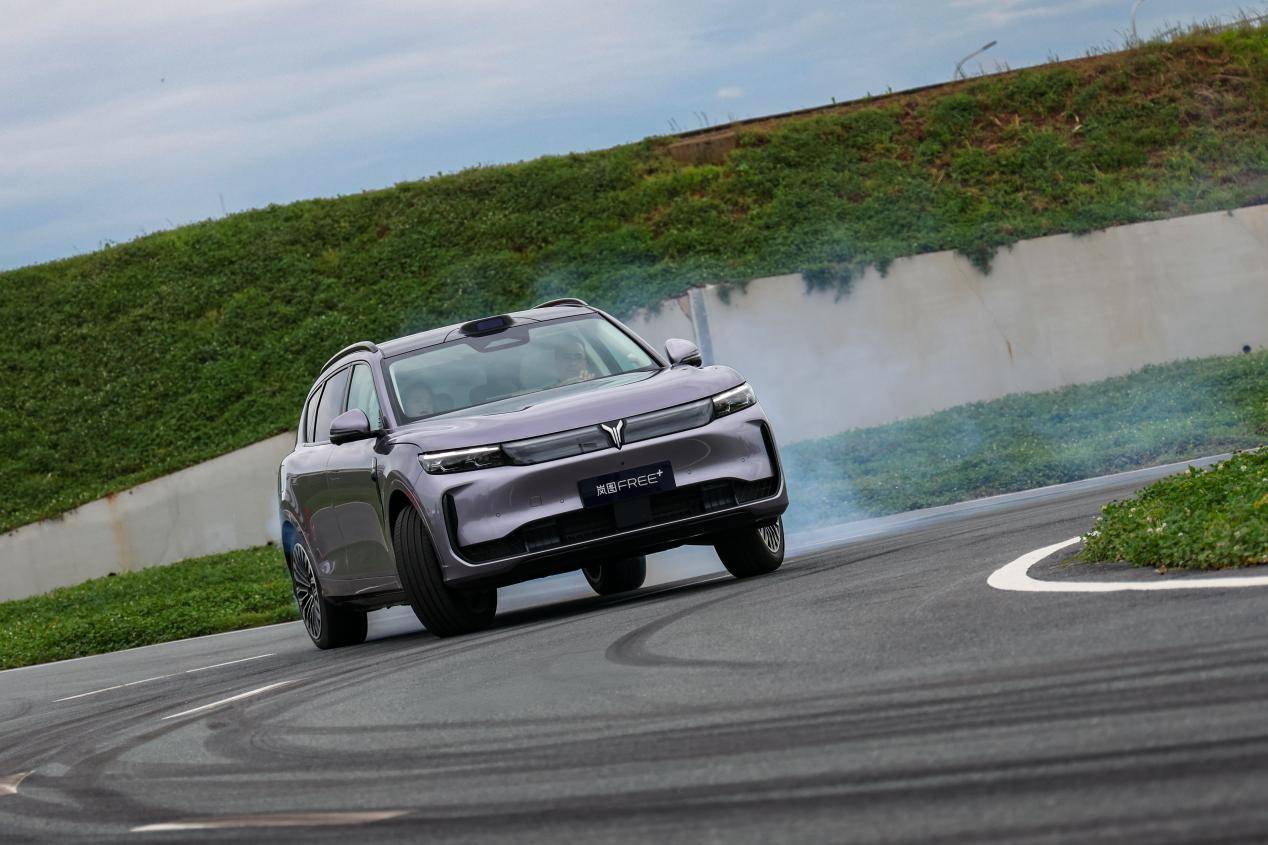 在1公里连续蛇形绕桩测试中,车辆在激烈变向中依然能保持后排乘客的平稳舒适,并成功完成“豆腐挑战”,验证了其动态舒适性。在飞坡测试中,车辆落地姿态稳健,无多余晃动,展现了悬架系统强大的冲击吸收和控制能力。配合可根据驾驶模式与实时工况智能调整前后轴扭矩的动态电四驱系统,岚图FREE+的驾控体验实现了从硬件规格到动态表现的全面提升。