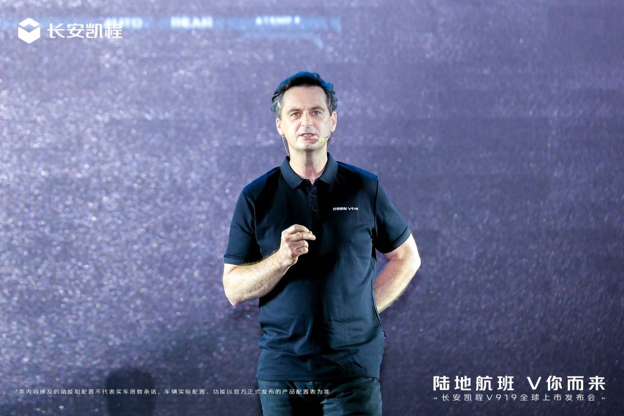 长安汽车全球设计中心凯程设计总监克里斯·汉密尔顿(Chris Hamilton)现场分享了V919设计理念。他讲到,长安凯程V919不仅承载着长安设计美学的精髓,融合了长安商用车设计理念的RELIABLE可靠稳固、INTELLIGENT智慧随需和EFFECTIVE高效直达三大设计支柱,更以“智慧功能美学”重新定义商用车价值标杆。从品牌到产品,“智慧功能美学”不仅可观、可感,更可用。