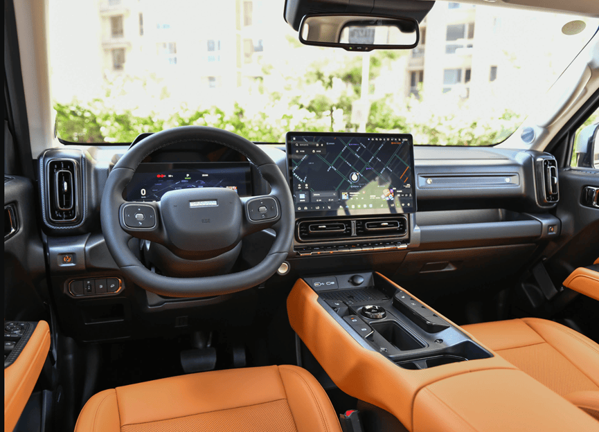 在细节方面,新车也展现出了极高的诚意。中控台下方配备了无线充电面板,方便驾驶者为手机等电子设备充电;车内还提供了50W 无线快充(配备独立散热风扇)与温控扶手箱,后者可随空调温度变化调节温度,完美适配儿童饮品保温与药物存储等场景。此外,新车还在材质与配色上进行了优化,珍珠米、玄武黑、琥珀棕三种内饰方案各具特色,中控台采用大面积软性材质包裹,辅以精致缝线工艺,20处实体按键保留了越野场景下的盲操便利性,搭配 “剧院级NVH”方案,通过双前围隔声设计与双层夹胶玻璃等36处声学优化,为驾乘者营造出了一个安静舒适的座舱环境。