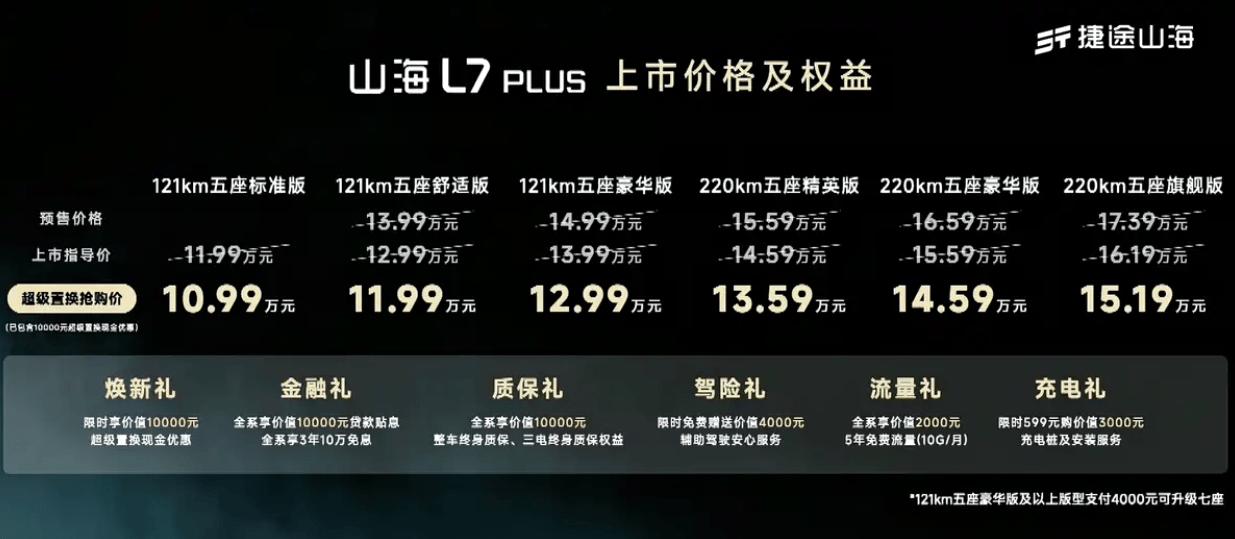 在当下的汽车行业,市场竞争愈发激烈,新能源汽车领域更是你追我赶。中国汽车产业正加速从规模扩张向价值创造转变,2025年上半年,新能源汽车渗透率进一步提升至44.3%,预计全年销量将达1650万辆,渗透率突破55%。众多车企不断推陈出新,试图在这一蓬勃发展的市场中抢占更多份额。在此背景下,8月26日,捷途山海L7 PLUS正式上市,新车共推出6款车型,售价区间为11.99 - 16.19万元,购车还可享超级置换抢购价,10.99 - 15.19万元即可入手,五座豪华版车型加4000元还能升级为七座车型。