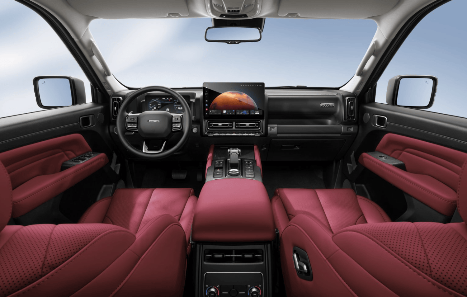 在其他内饰布局与设计上,勇士版与在售车型基本保持一致。采用 10.25 英寸的全液晶仪表盘,能够清晰地显示车辆的各种信息,包括车速、转速、油耗等,方便驾驶者随时掌握车辆状态。14.6英寸中控屏则集成了丰富的智能功能,如导航、多媒体娱乐、车辆设置等,操作流畅,界面简洁易懂。中控区域保留了大量物理按键,搭配传统的飞机档把,在保证操作便利性的同时,也为越野驾驶提供了更稳定的操作手感,即使在颠簸的路况下,驾驶者也能准确无误地进行操作。