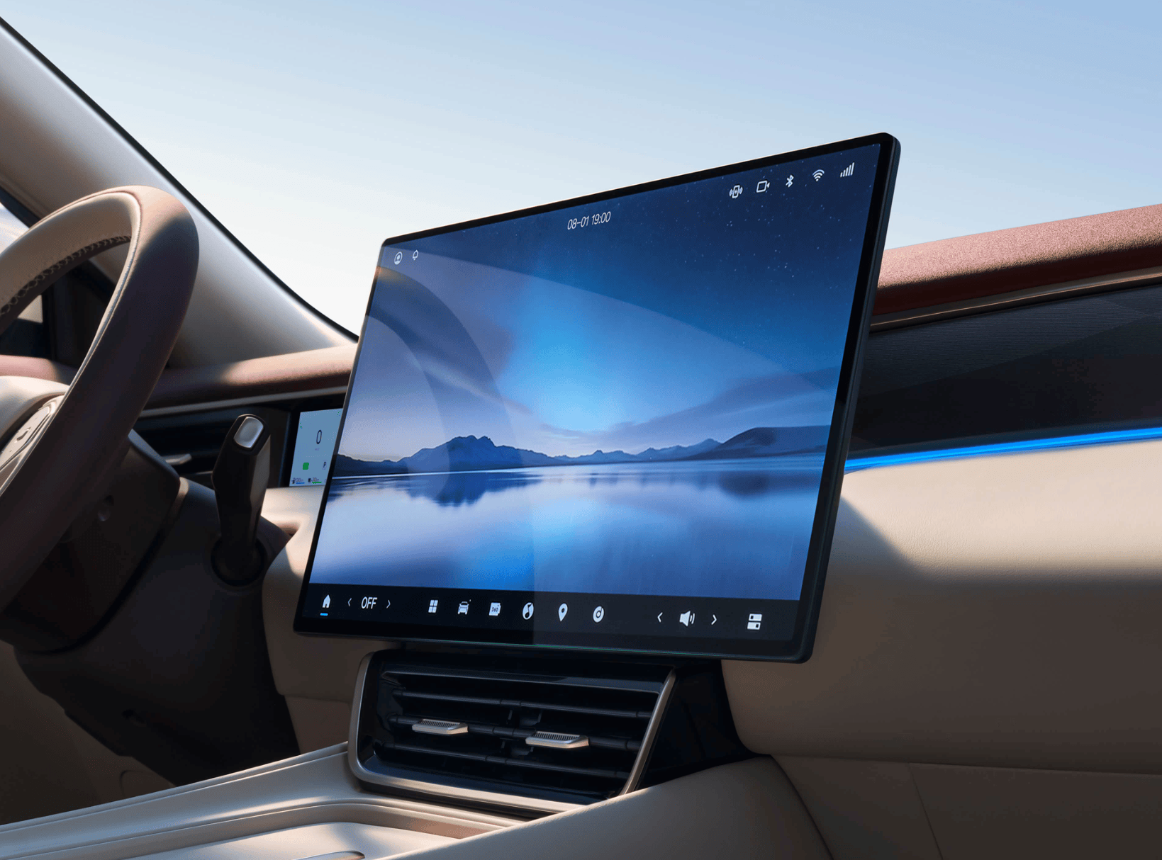 内饰方面,东风风神L8采用怀抱式布局,整体风格简约而不失豪华。车内配备15.6 英寸悬浮式中控屏和8.88英寸全液晶仪表,搭配双辐式平底多功能方向盘,应用怀挡式换挡机构,操作便捷且科技感十足。