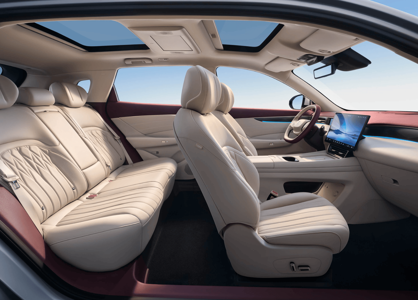 在智能座舱方面,新车搭载 “天元智舱” 系统,内置高通骁龙8155芯片,接入 Deepseek和豆包双AI大模型,支持四音区语音识别唤醒、手机 APP 远程控制、CarPlay/HUAWEI HiCar/Carlink 手机互联等功能。无论是导航、娱乐还是车辆控制,都能通过语音指令轻松完成,为驾驶者带来便捷的操作体验。