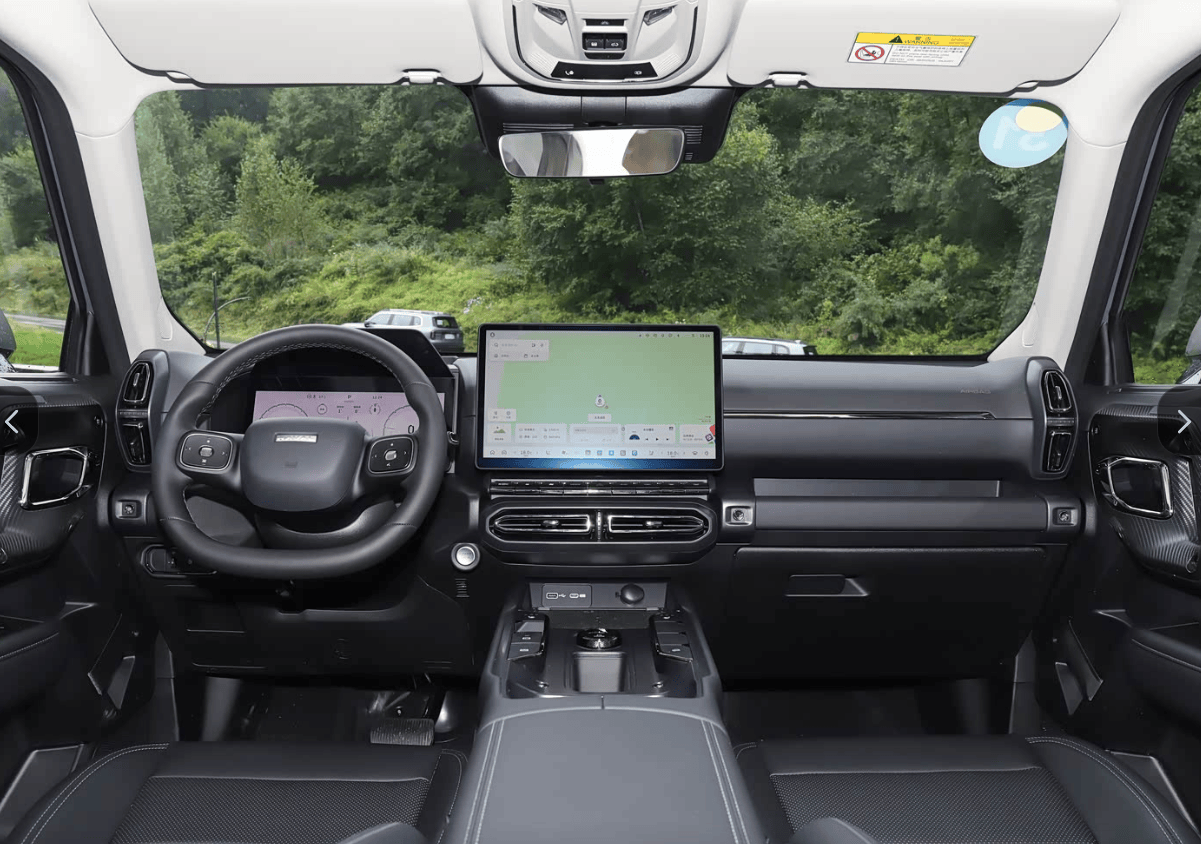 哈弗大狗PLUS搭载一块14.6英寸的中央显示屏,支持1920×1080分辨率,显示效果清晰。车机系统采用 Coffee OS 3系统,配合8155芯片 ,手指操控和响应速度流畅。车辆还预装了包括高德地图、喜马拉雅等大量实用 app,方便用户使用。此外,车辆支持双区语音控制,在嘈杂环境下的语音识别率可达8成左右 。D型方向盘的外缘直径相对较小,提升了仪表盘可视范围,皮质包裹的方向盘整体握感舒适。作为一款轻越野产品,大狗PLUS车舱内依然保留了20个实体按键,按键采用钢琴烤漆工艺,提升了豪华感。空调/除雾等高频使用的实体按键均采用独立布局,方便驾驶者盲操作。
