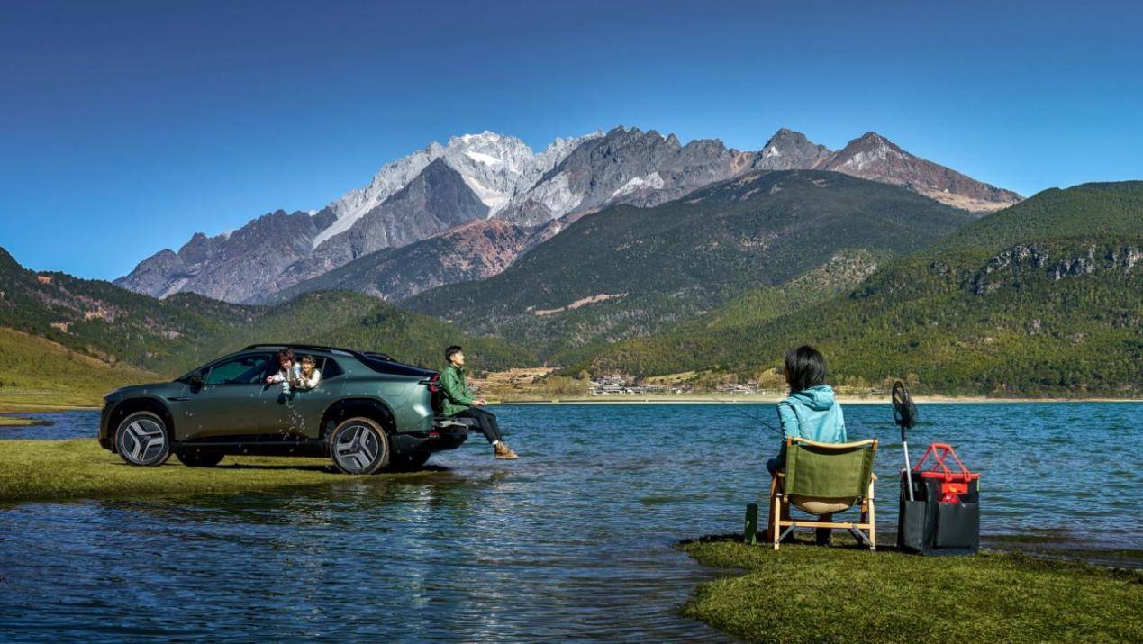 车身侧面,配备黑色车顶行李架、半封闭式轮辋和隐藏式门把手,风阻系数仅 0.237Cd。车尾的环绕式尾灯组与双横条状灯带,在点亮后呈现环形贯穿效果。值得一提的是,其后备厢可电动开启至开放式状态,并配备电动平翻式尾门,能变形为类似 “皮卡车”的风格,兼具SUV的空间、通过性与皮卡的承载、拓展性。