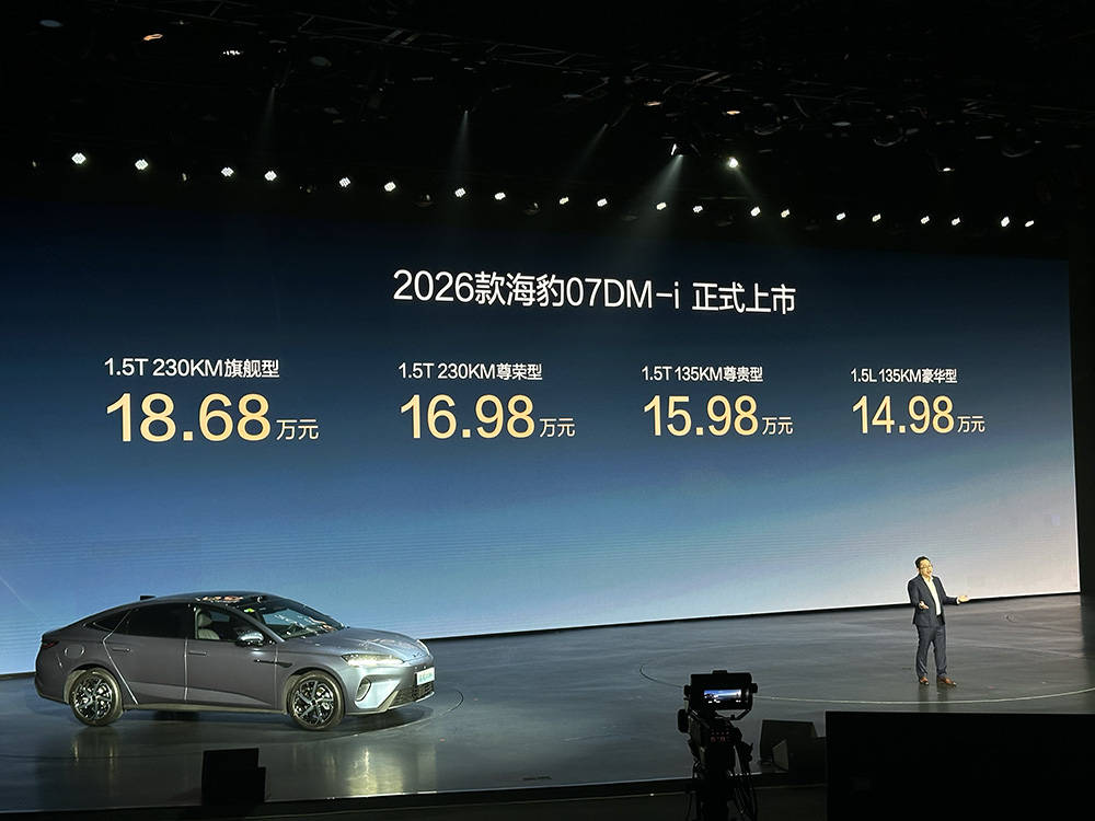 9月15日晚,2026款比亚迪海豹07 DM-i正式上市,四款配置车型售价区间14.98-18.68万元。作为比亚迪海洋网旗下的主力插混车型,第五代DM技术带来的1585公里综合续航,意味着北京到上海的单程自驾无需中途补能;而230公里的超长纯电续航,让多数消费者实现每周仅充一次电的通勤自由,电费成本折算每公里不到一毛钱,省下的油费足够支撑全家周末短途游。