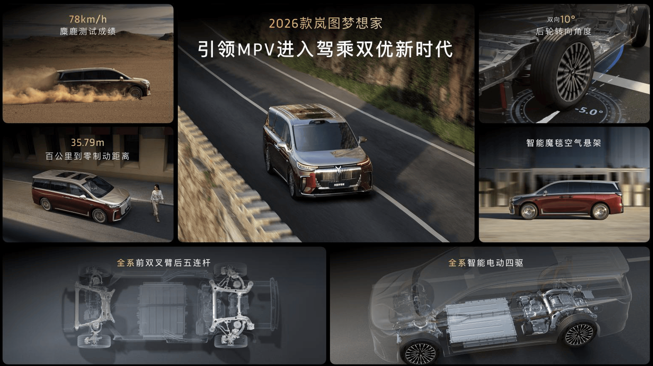 近日,2026款岚图梦想家正式上市,新车推出7款车型,涵盖插电混动和纯电动两种动力形式,官方价格区间为32.99-43.99万元。作为品牌旗下的高端MPV车型,新款梦想家在三电系统、智能科技和机械素质方面实现多项技术突破,其市场表现早在成都车展预售阶段便已显现——1小时订单破万的成绩印证了市场对这款车型的关注度。