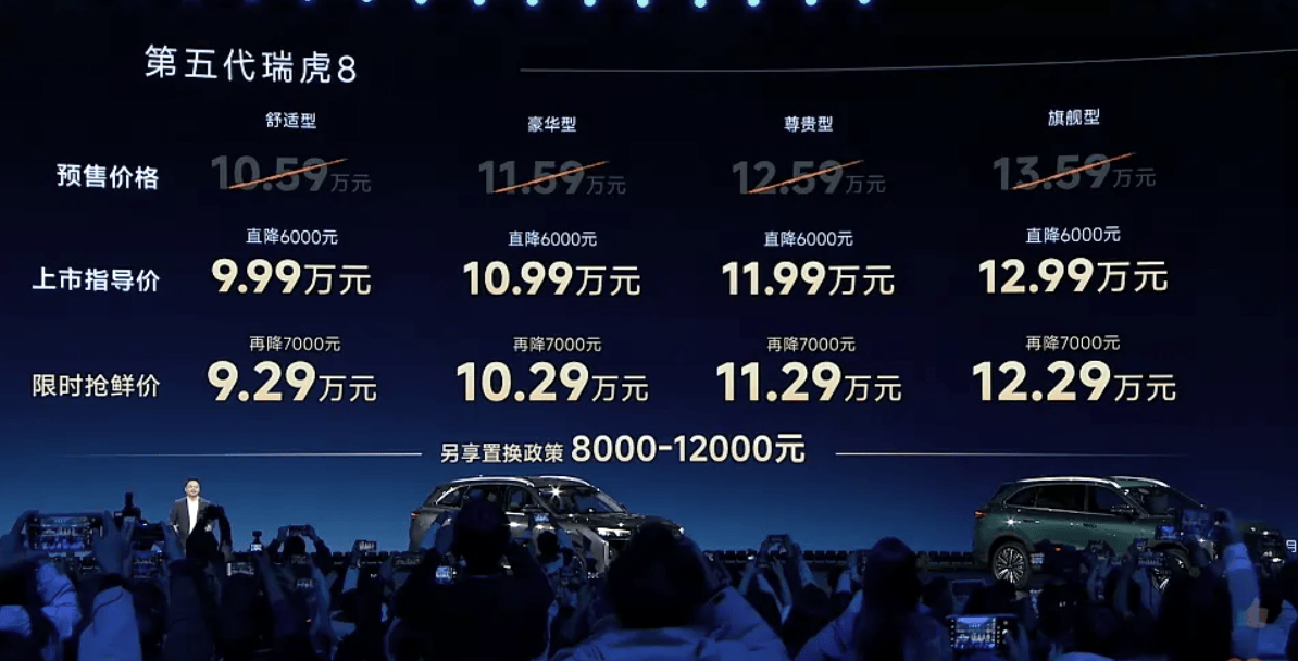11月10日,第五代瑞虎8在北京正式上市,售价区间为9.99-12.99万元。作为瑞虎家族做了十年的车型,它没说什么夸张的宣传话,反而更愿意提145万全球用户的实际反馈——毕竟这些真实使用过的人,口碑才更实在。这次上市,它还带来了9.29 -12.29万的尝鲜价,再加上终身质保,家里想选车的人,一看就能明白这份选择划不划算。